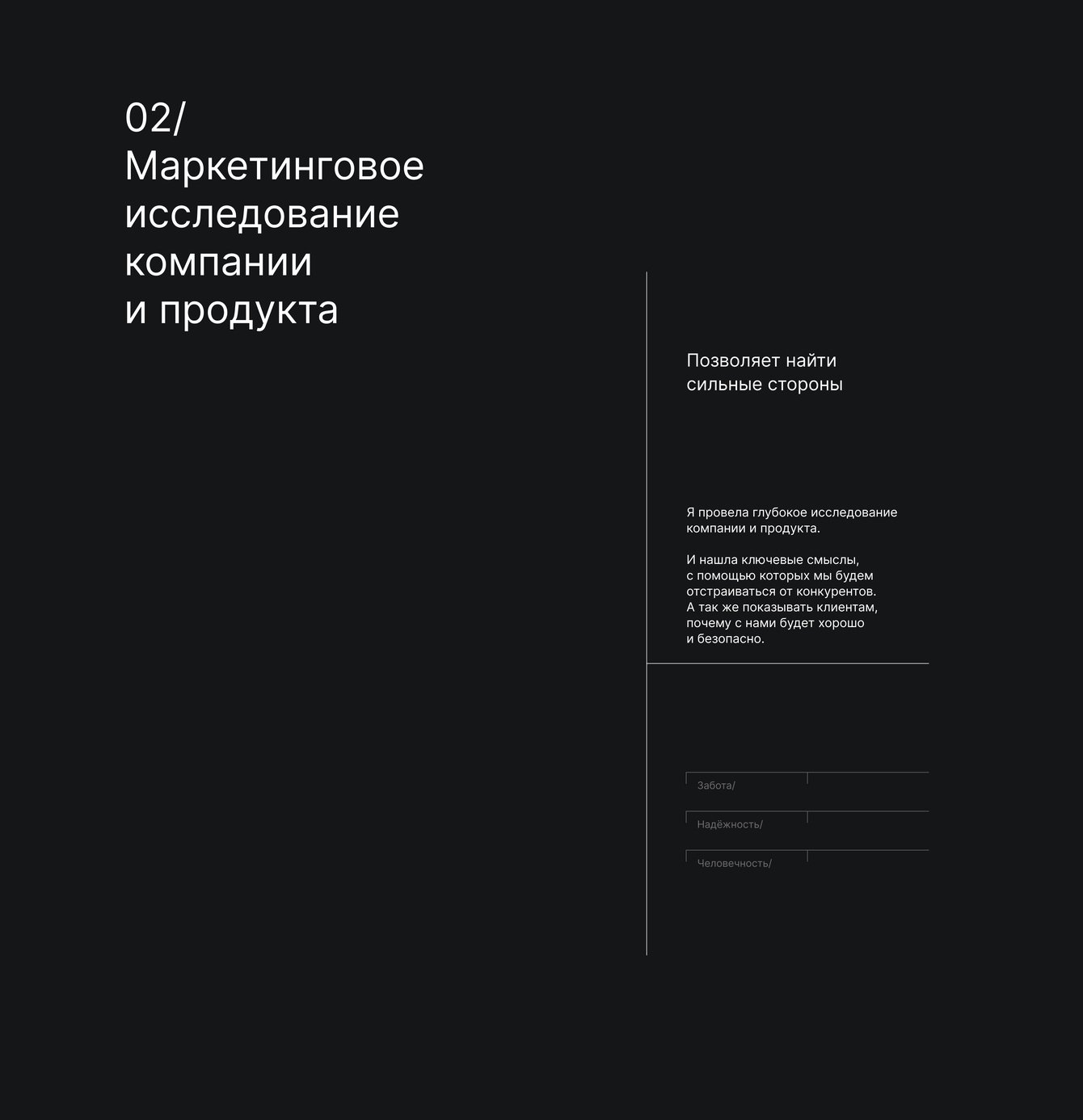 • В несколько этапов провела брифинг-интервью с разными лицами компании. Сформулировала смыслы для каждой страницы.
