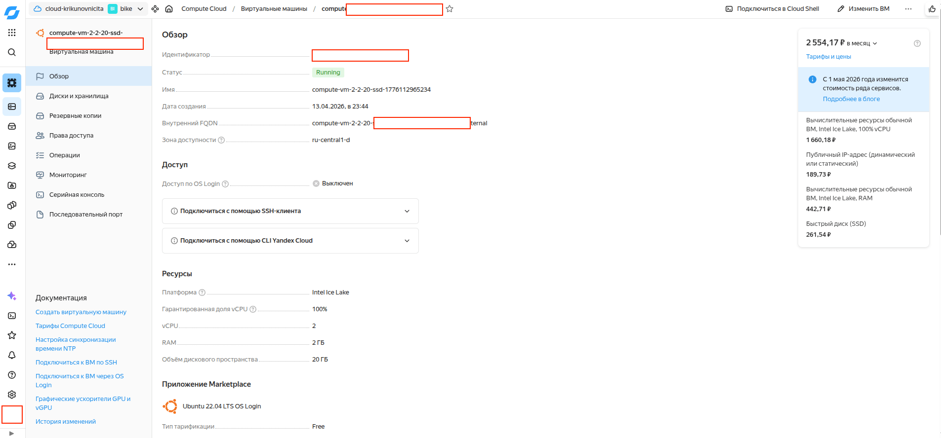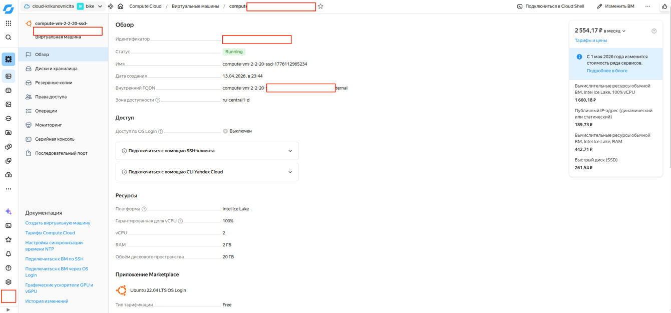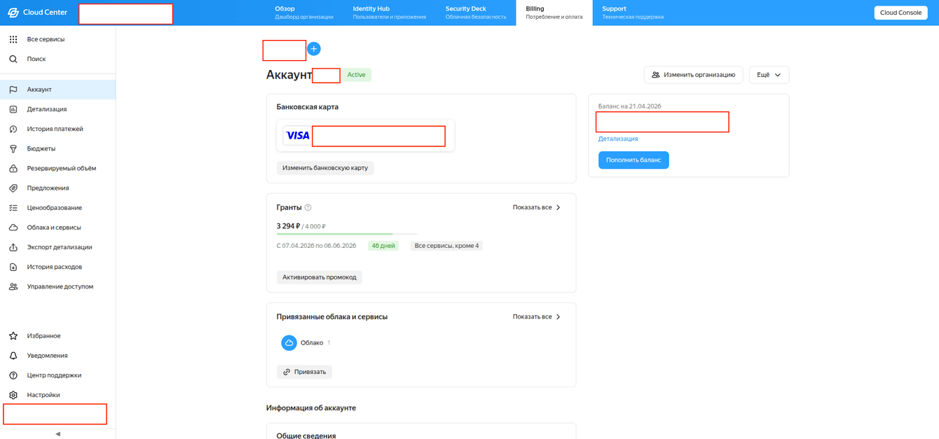 Регистрация организации в Yandex Cloud (получение гранта 10 000 ₽). Настройка виртуальных сетей и создание инстансов.