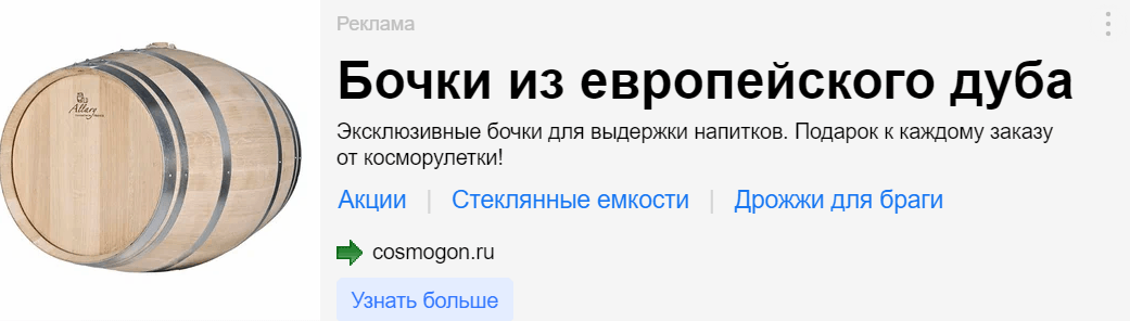 — в категории «бочки» — в поисковых кампаниях цена за клик ниже, чем в обычных в 2 раза;