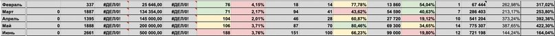 Таблица с окупаемостью трафика по месяцам