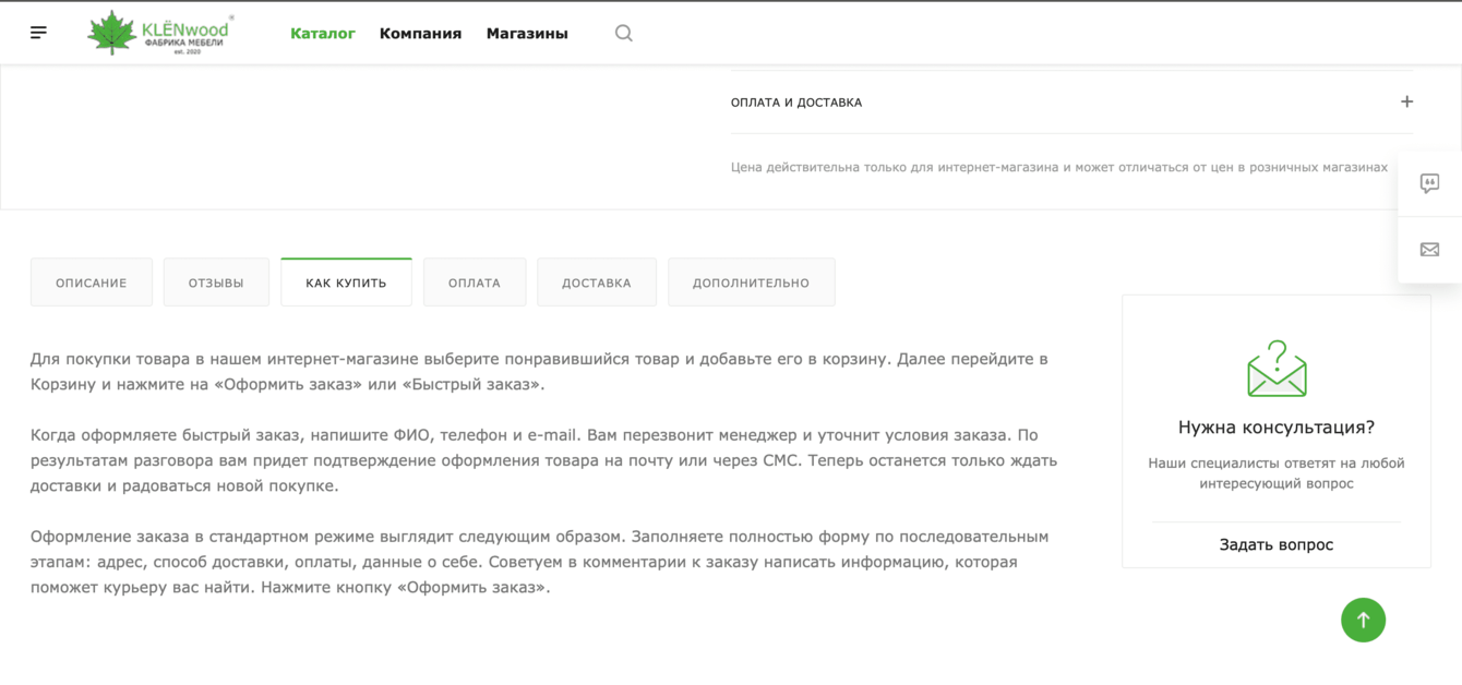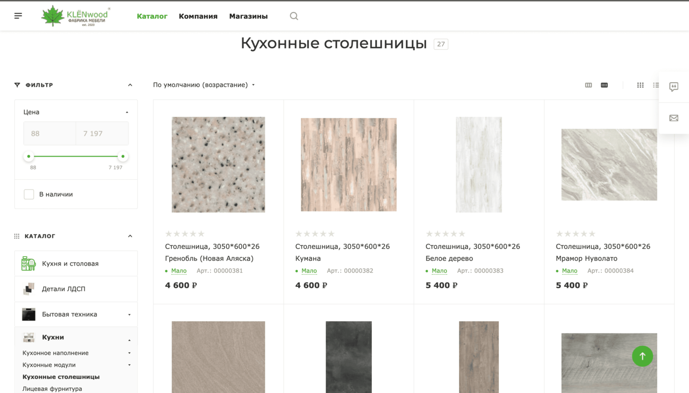 Заказчик – фабрика корпусной мебели «КлёнВуд». Компания реализует кухонные гарнитуры, мебель для спальной и гостиной, прихожие и предметы домашнего декора.