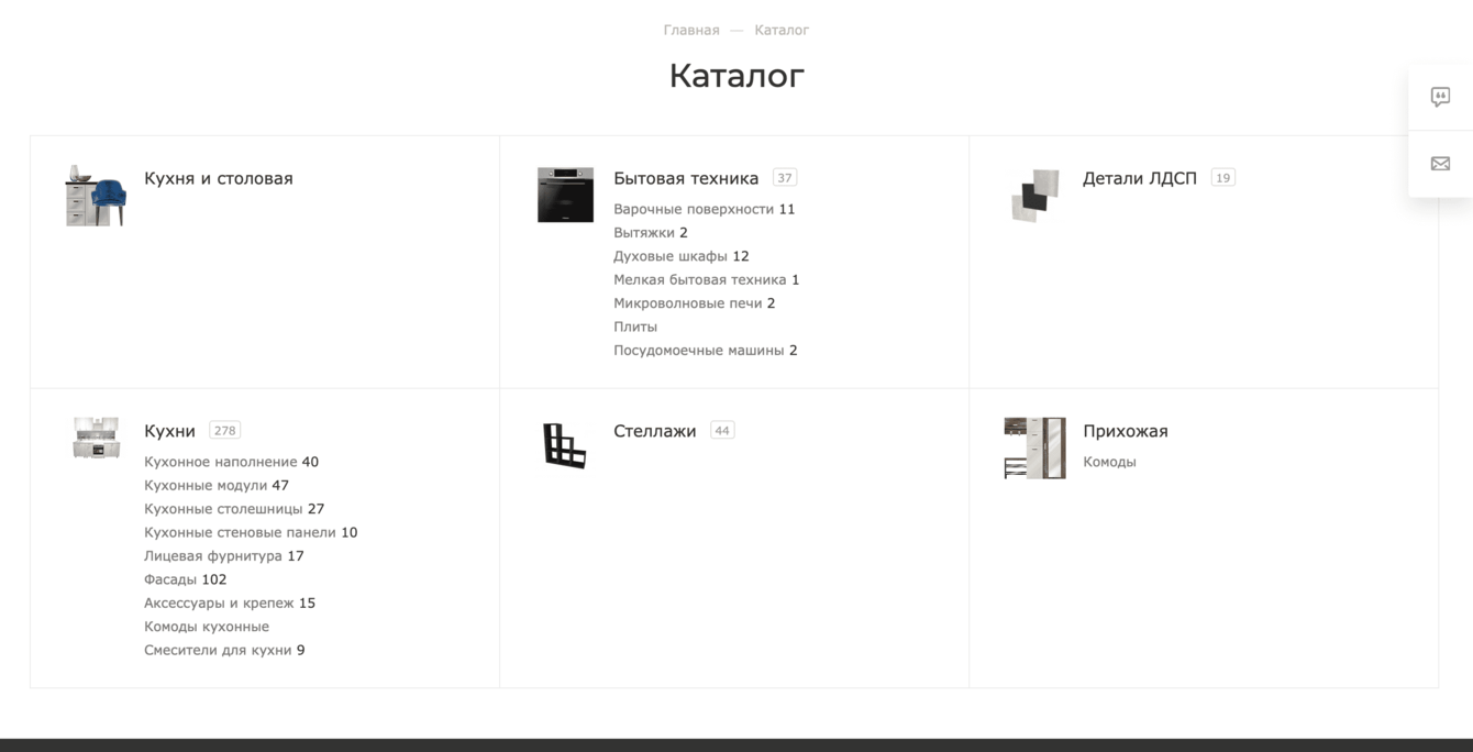 Раздел с каталогом на сайте