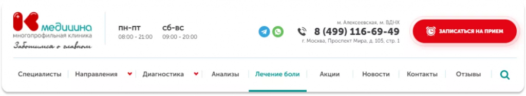 “К Медицина” – это частная многопрофильная клиника в Москве, которая оказывает услуги по аппаратной и лабораторной диагностике, лечению и профилактике заболеваний различных направлений медицины. Представлены хирургия, эндокринология, офтальмология, ортопедия, врачебная косметология и многие другие направления. Клиника успешно работает на рынке медицинских услуг уже 25 лет, имеет современное оснащение и применяет передовые технологии. Компания Belberry провела работу для клиники “К Медицина” по двум направлениям: комплексное поисковое продвижение и редизайн сайта.