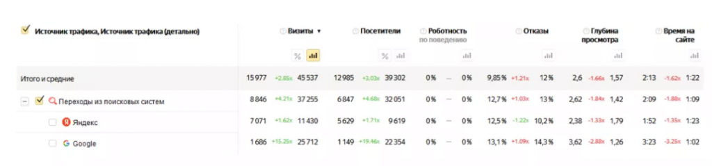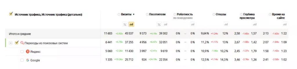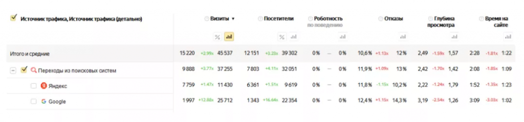 В таблице 1 можно увидеть данные по визитам, отказам, глубине просмотра и времени на сайте за сентябрь в сравнении с декабрем 2021.