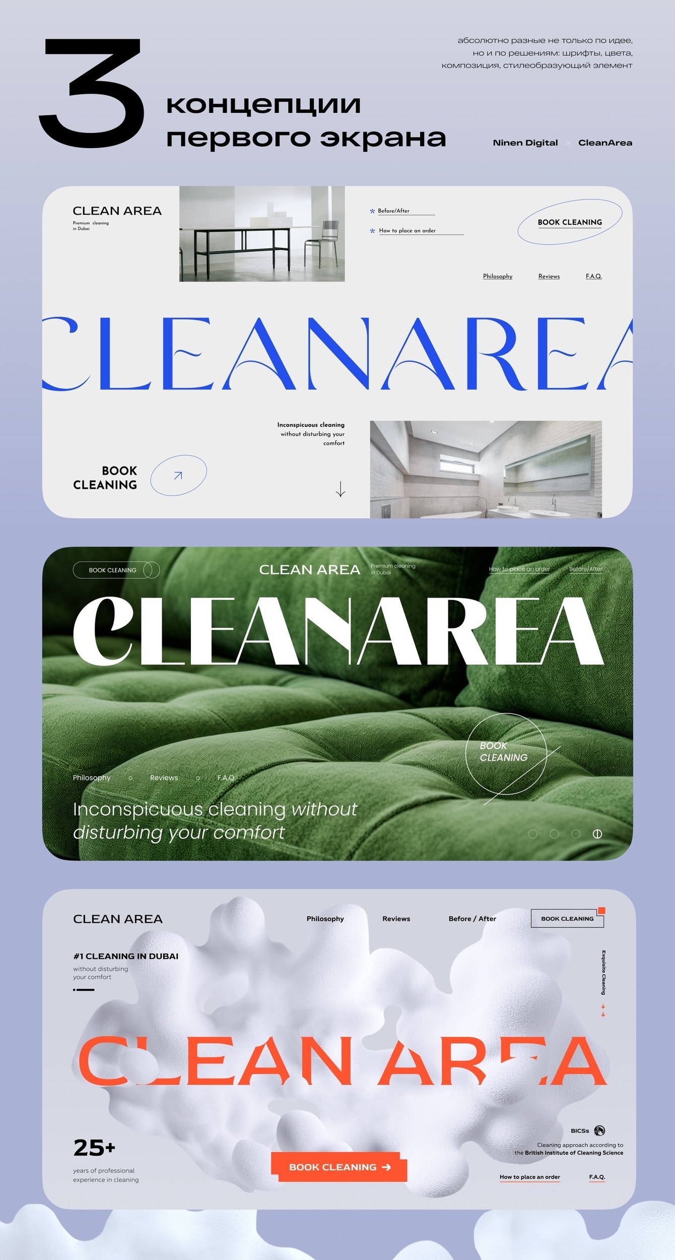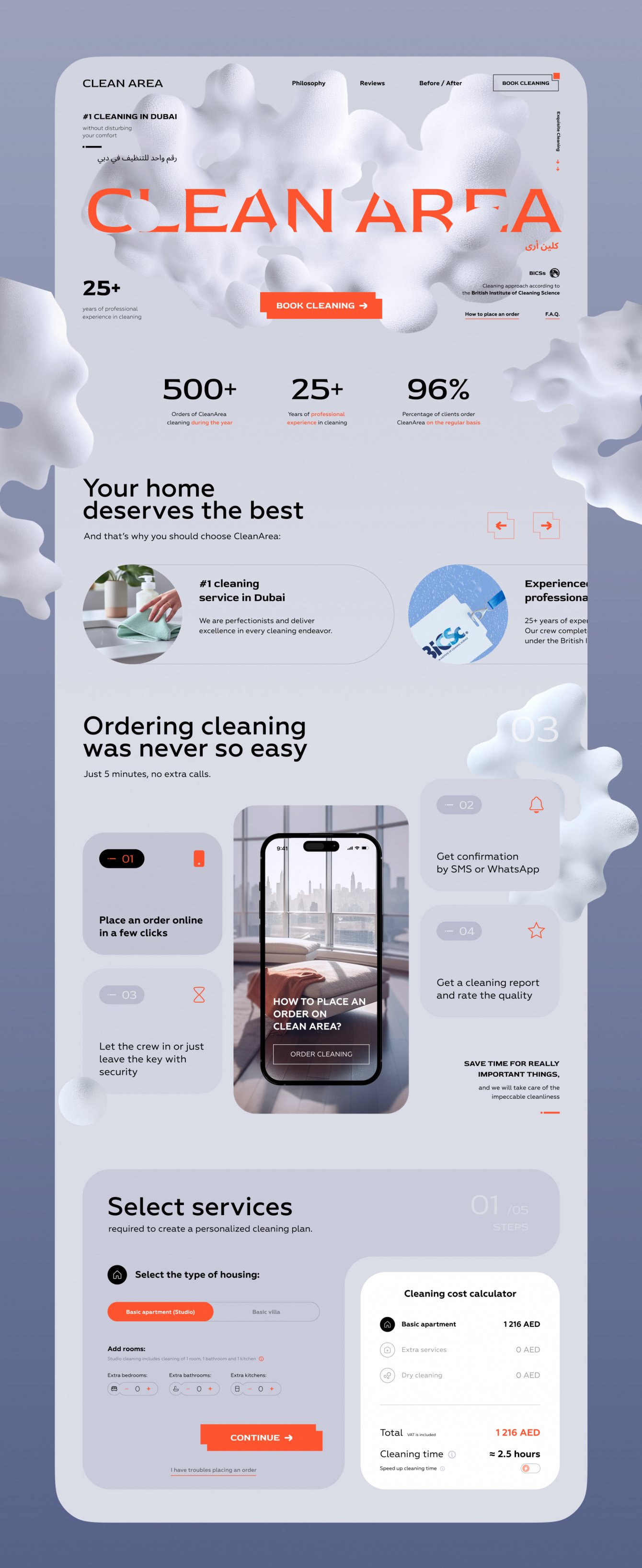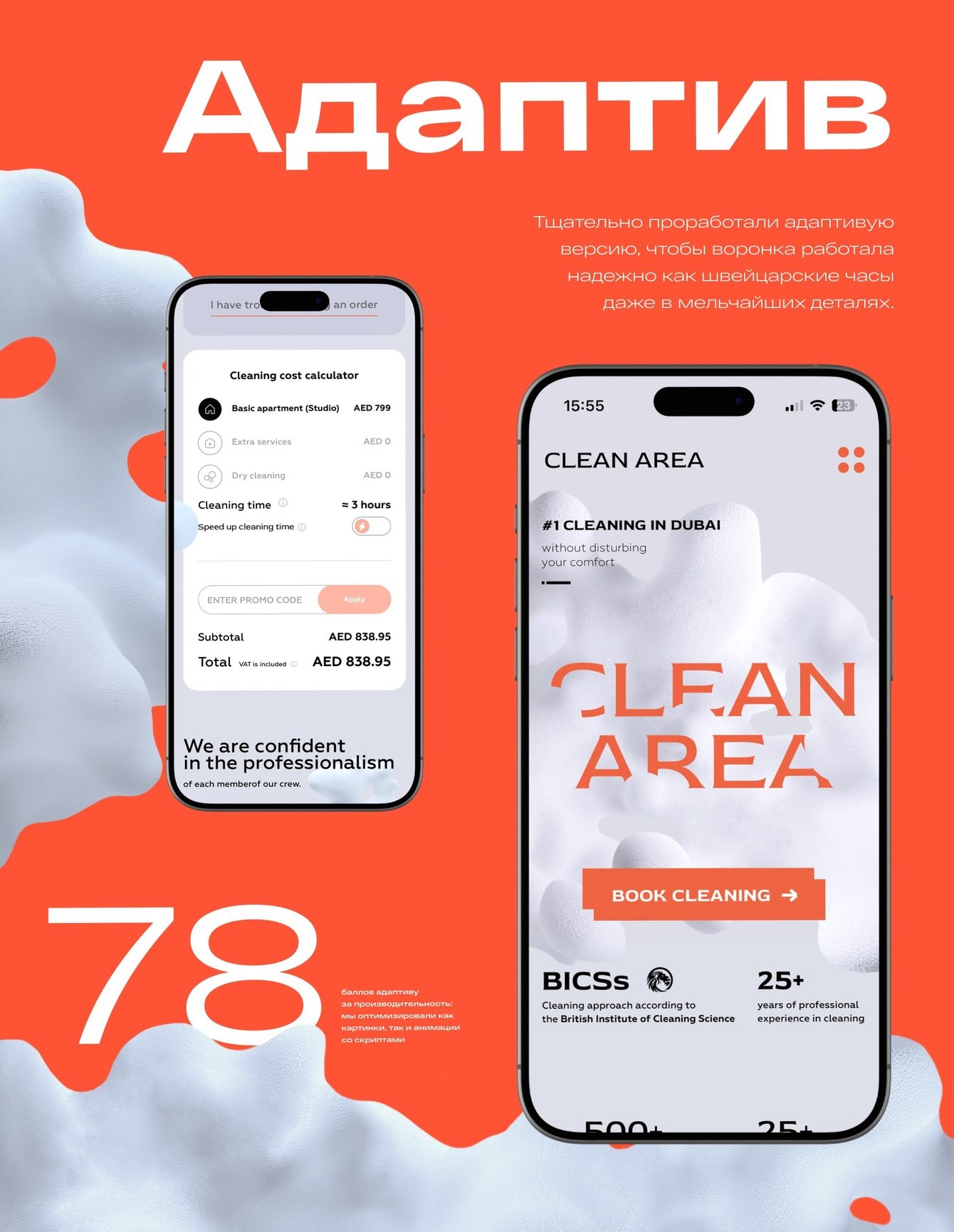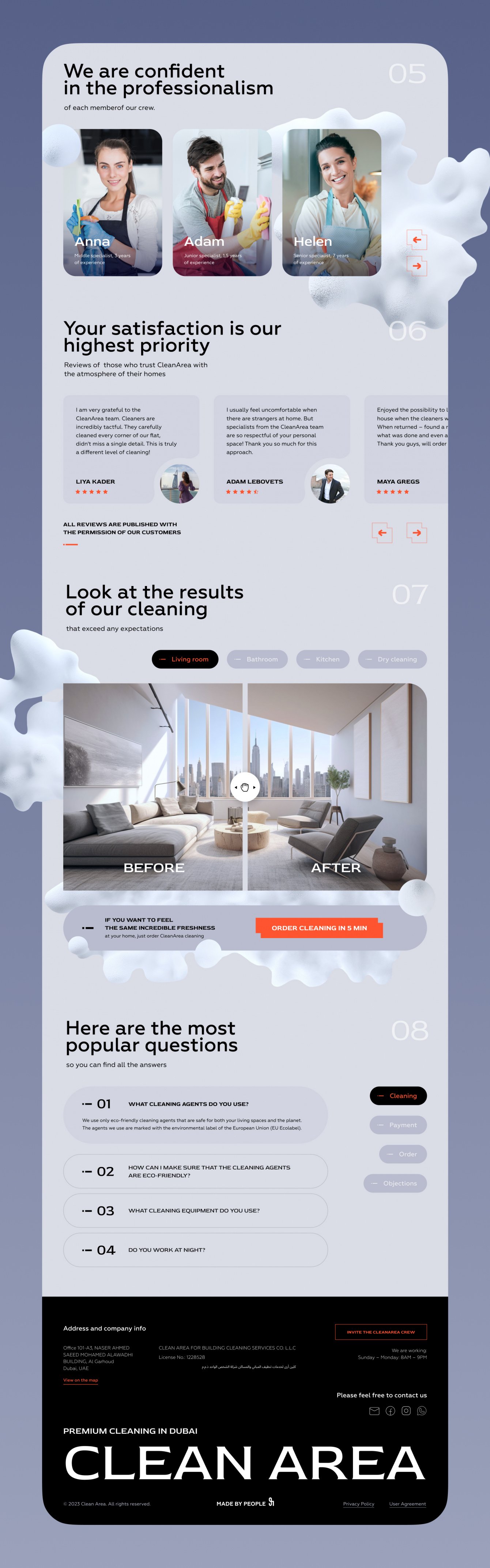 — Разрабатывать landing page для Clean Area, премиального клининга в Дубае.