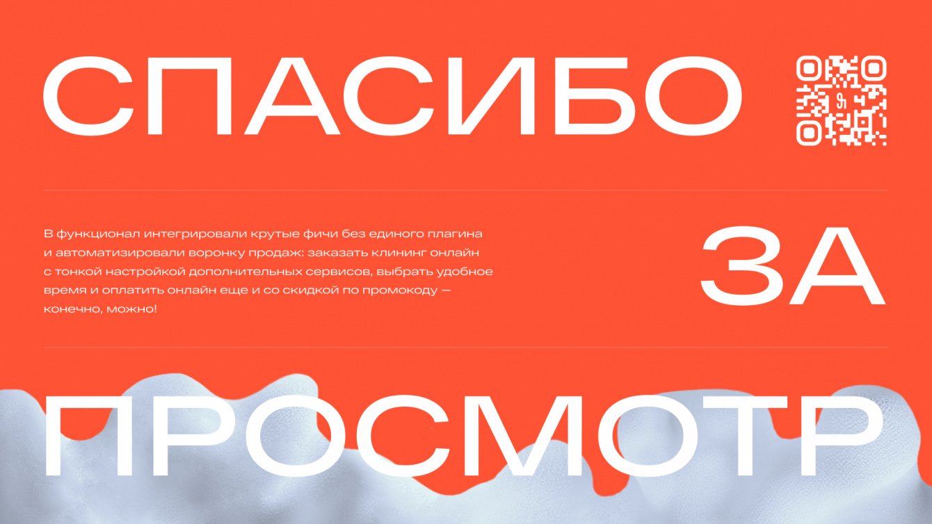 В функционал интегрировали крутые фичи без единого плагина и автоматизировали воронку продаж: заказать клининг онлайн с тонкой настройкой дополнительных сервисов, выбрать удобное время и оплатить онлайн еще и со скидкой по промокоду — конечно, можно! Идеально натянутая CMS, скорость загрузки менее 2 секунд, элементы геймификации и полный разрыв шаблонов индустрии премиального клининга — настолько вычищенный landing page, что даже мама не найдет ни одной пылинки!