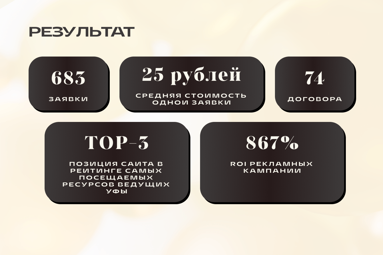 - Результат рекламной кампании: средний CTR составил 8.7%, что в 2.3 раза выше среднего показателя по нише.