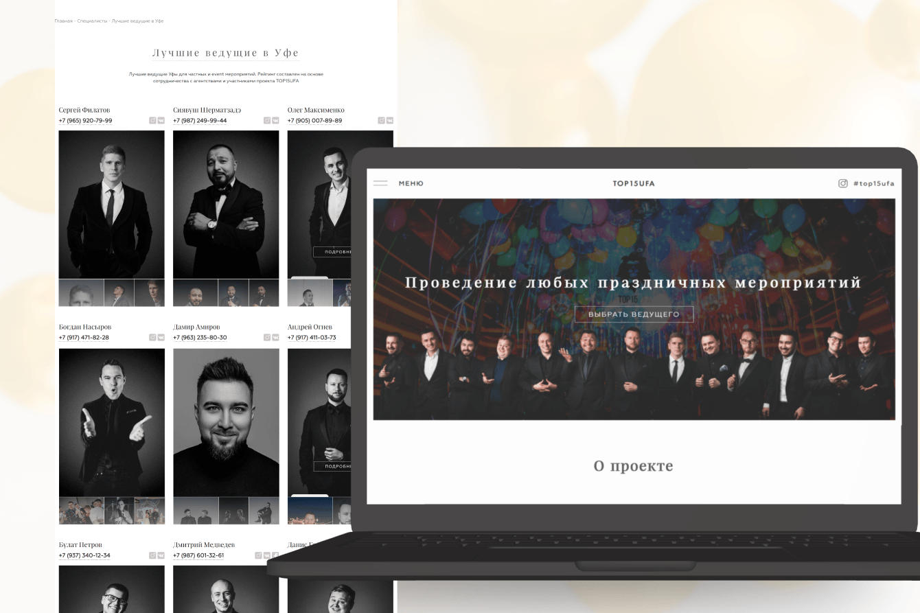 ТОП15 УФА - это эксклюзивное объединение 15 лучших ведущих Уфы, тщательно отобранных по рекомендациям ведущих event-агентств города. Каждый ведущий в составе команды - профессионал своего дела с безупречной репутацией и обширным портфолио успешных мероприятий.