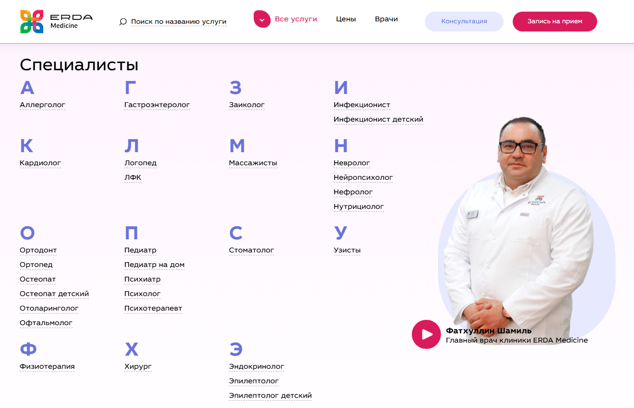 цены и список врачей теперь подтягиваются автоматически и всегда актуальны.