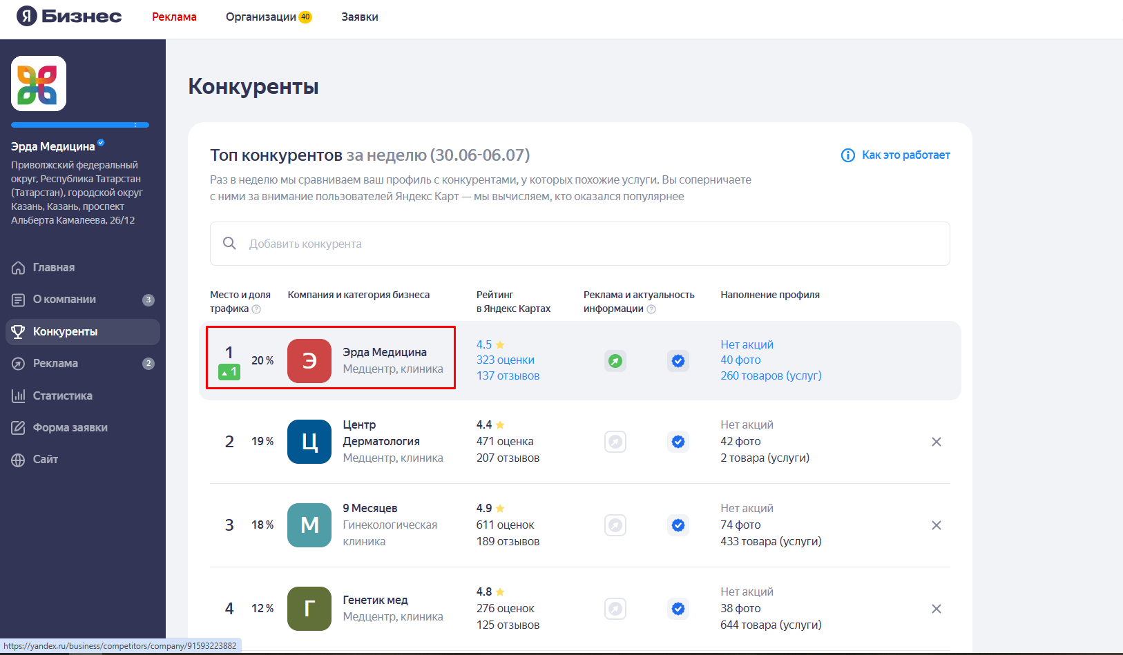 ü Анализ конкурентов — определили сильные и слабые стороны конкурирующих клиник.