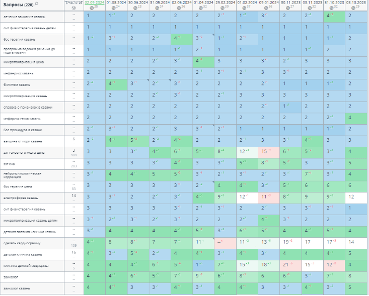 ü Сбор семантики — сформировали полное ядро под направления педиатрии, вакцинации, логопедии и других услуг.