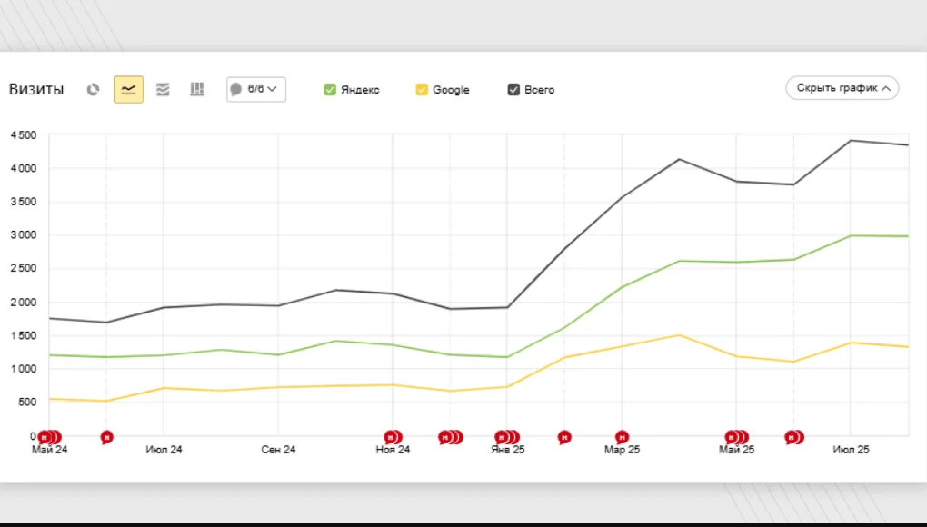 Настроили аналитику в Яндекс.Метрике, чтобы определять эффективность работ