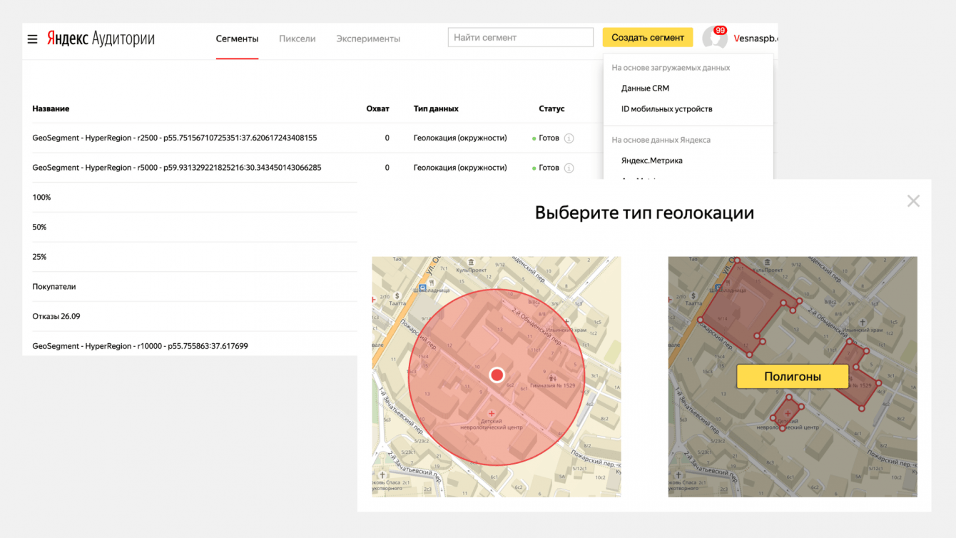 1/ гиперсегментация по гео: выбирали местоположение конкурентов (вплоть до конкретного здания).