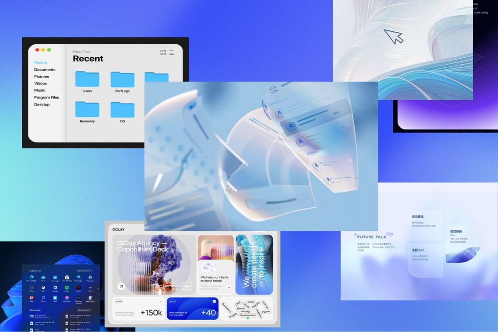 В этой концепции мы предложили представить бренд как операционную систему со всеми прилагающимися трендами: глассморфизм, абстракции, градиенты и плашки. Это универсальный для корпоративных и потребительских проектов образ, который связывает тематику сайта с конечным продуктом.