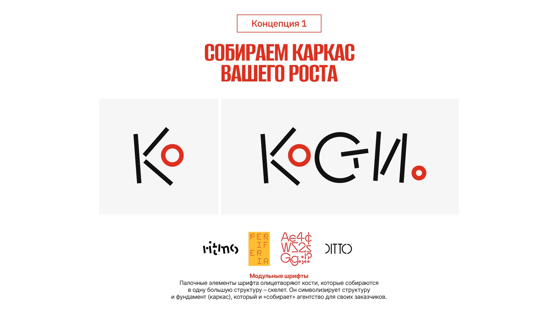 Графически идею передали через модульный шрифт, собранный из простых элементов, как каркас из костей.