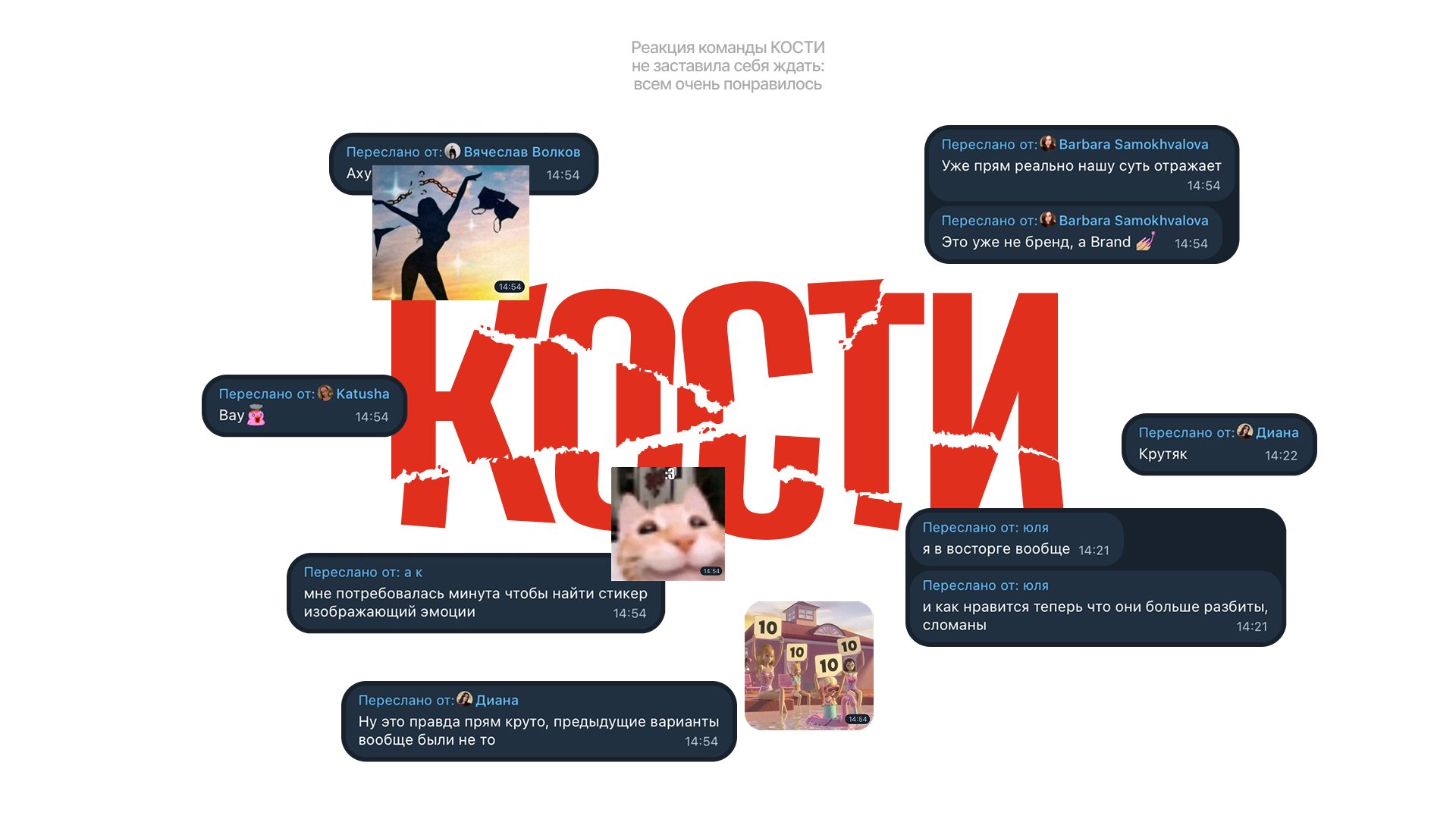 После разработки логобука бренд «Кости» вернулся с новым запросом: «Мы попробовали обновить визуал, но логотип все равно существует изолированно, нам непонятно, как интегрировать его в стиль».