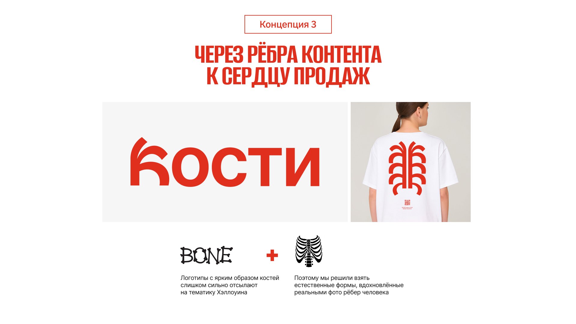 В логотипе появились те самые «ребра», а форма буквы — намеренно естественная. Эта идея отлично ложилась на принты и мерч.