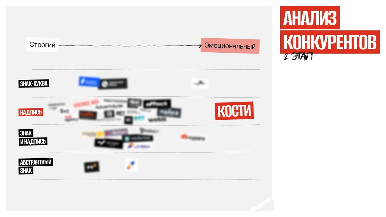 На старте Маша сказала «Хочется что-то дерзкое, с жесткими линиями, но без медицинских ассоциаций. Давайте поиграем со словом “Кости”, хочется, чтобы логотип отражал название».