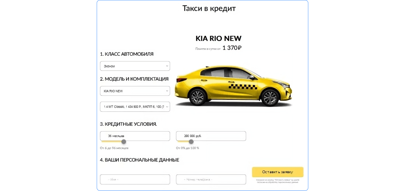 Цель — показать преимущества покупки авто для такси «под ключ»