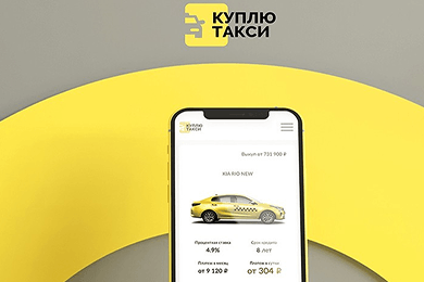 ● Были поставлены акценты на простоте и лаконичной подаче, цветовая гамма подчёркивает ассоциативную связь с услугами такси. Разработаны эффективные блоки для онлайн-подсчёта условий кредитования.