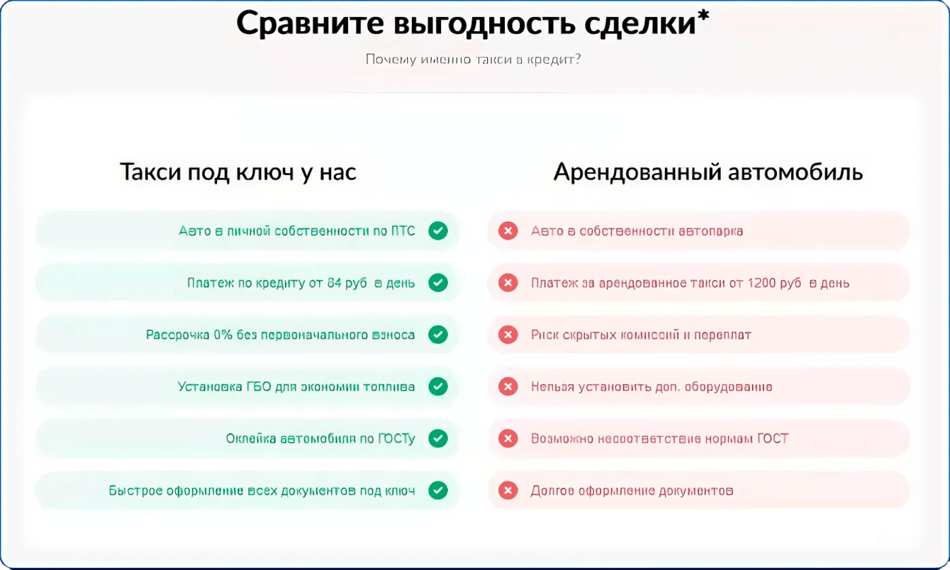 Создали блок, позволяющий сравнить покупку собственного автомобиля в кредит в компании «Кулю такси» с арендой автомобиля.