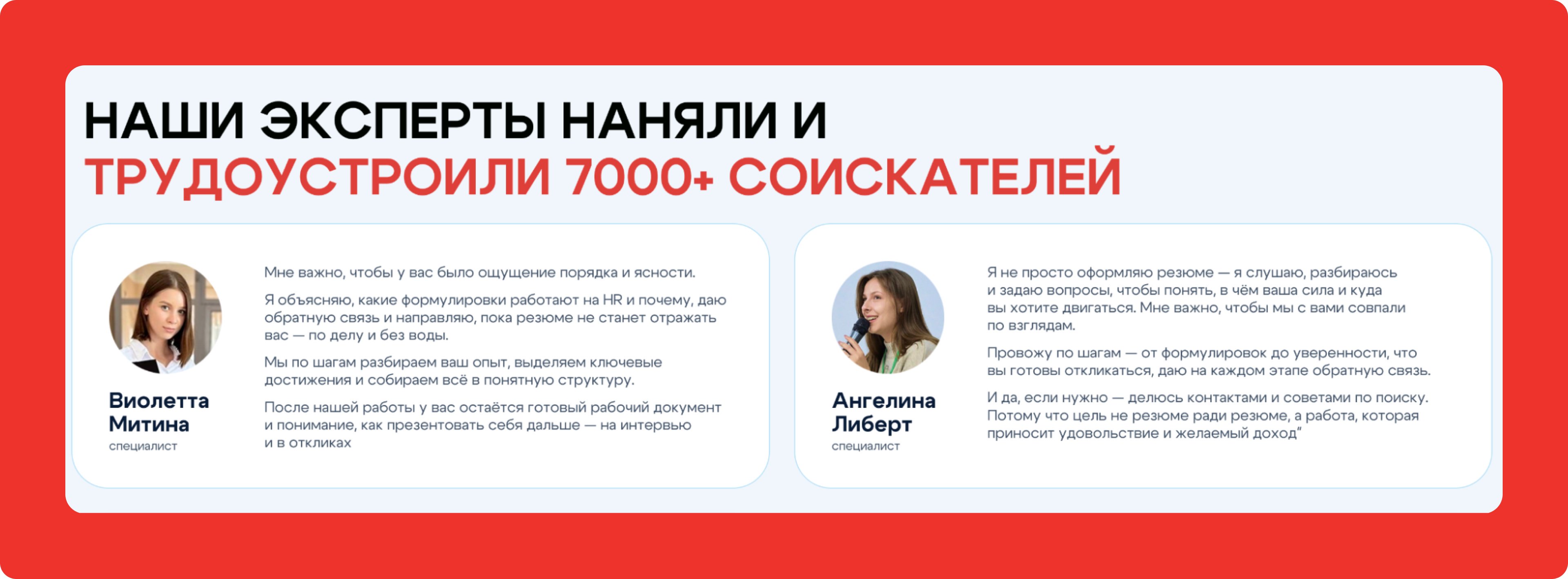 На кастдевах мы обнаружили возражение, которое невозможно закрыть в рамках услуги «разработка резюме»: