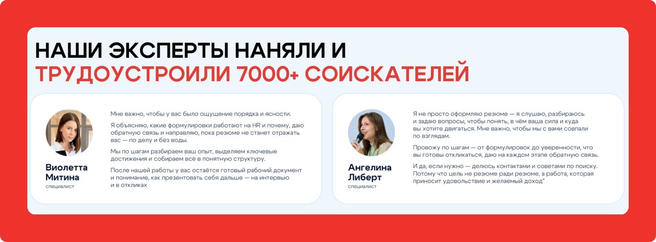 Типичные лендинги в этой нише говорят одно и то же: «Профессиональное резюме за 3 дня», «Увеличим отклики», «Опытные HR». Но почему человек, который уже месяц безуспешно рассылает резюме, должен поверить именно этому обещанию? И главное — какое обещание ему вообще нужно?