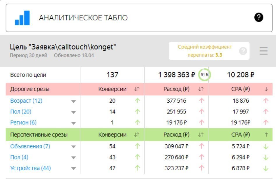 Проанализировали рекламные кампании с помощью сервиса Goodkey и выявили пользовательские срезы, результаты по которым сильно отличались от средних значений.