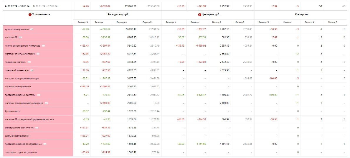 Отключили некоторые неэффективные ключевые слова, например - “Огнеборец” и “ИСП”, “Бонтел”, которые тратили значительную часть средств без конверсий.
