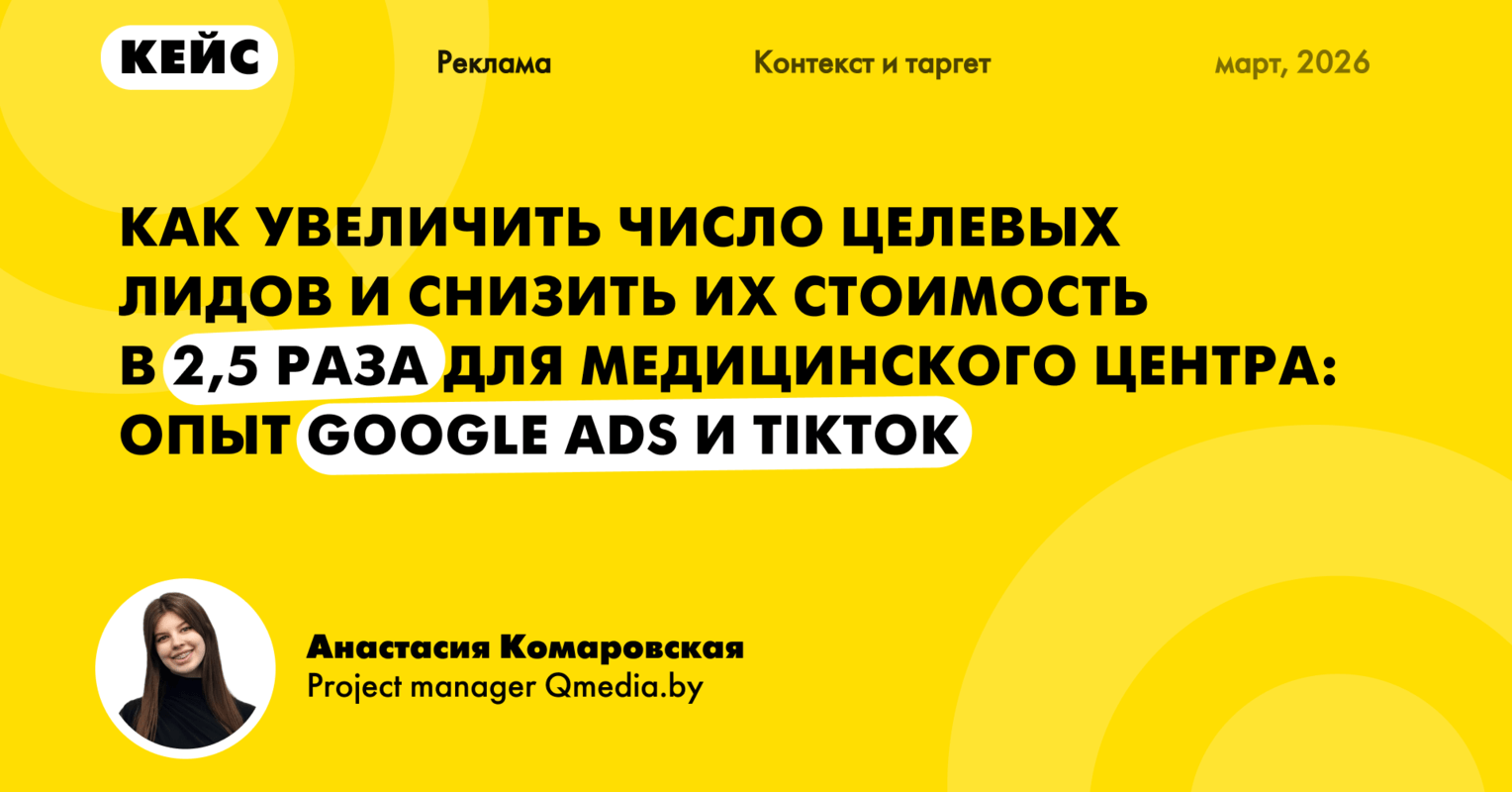 С Qmedia начали работать недавно, запускали рекламу в TikTok и Google. Впечатления положительные: чувствуется, что работают опытные люди, которые не просто исполняют как указано в ТЗ, а думают, советуют и ищут решения для нашей непростой тематики. Отдельно хочу поблагодарить внимательный подход менеджера Анастасии. Очень приятно работать именно с ней — Настя оперативно решает все вопросы, ненавязчиво ведет диалог и действительно развивает наш бизнес, а не просто передает информацию. Вопросы всегда на контроле, по каждой нашей задаче есть аргументированные предложения. Рады, что обратились к вам! И лиды пошли сразу и по клиентской базе видим результаты роста!