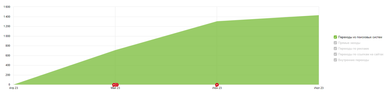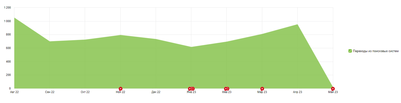 В начале сотрудничества трафик из поисковых систем на сайте заказчика выглядел следующим образом: