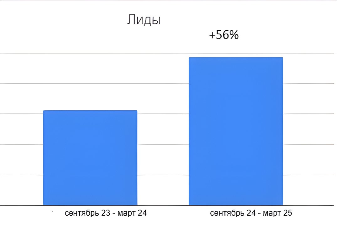 3. Лидов стало больше на 56%, конверсия выросла на 49%. Для оценки результатов взят период с момента запуска сентябрь 2023 по март 2024 в сравнении с аналогичным периодом в 2024-2025 годах для исключения влияния сезонности в сравнении.