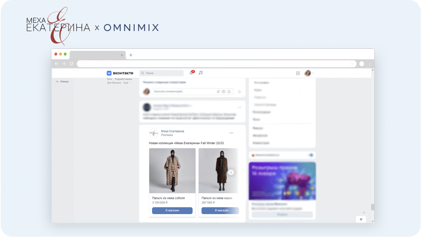 Далее, после сбора первичной аудитории, мы подключили таргетированную рекламу в ВКонтакте, контекстную рекламу на поиске и в РСЯ, чтобы продвигать меховые изделия на этапе поиска и сравнения разных брендов.