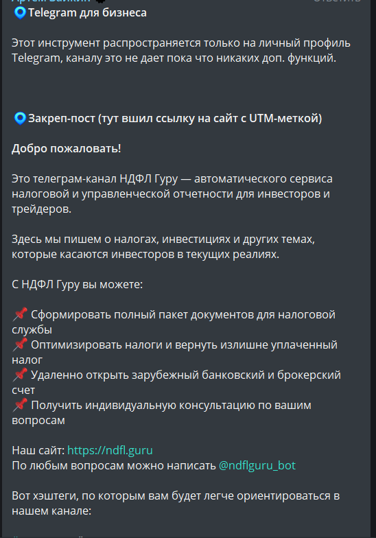Перед запуском трафика на канал мы дали правки и рекомендации по ведению канала, контенту и закреп-посту, который сами написали.