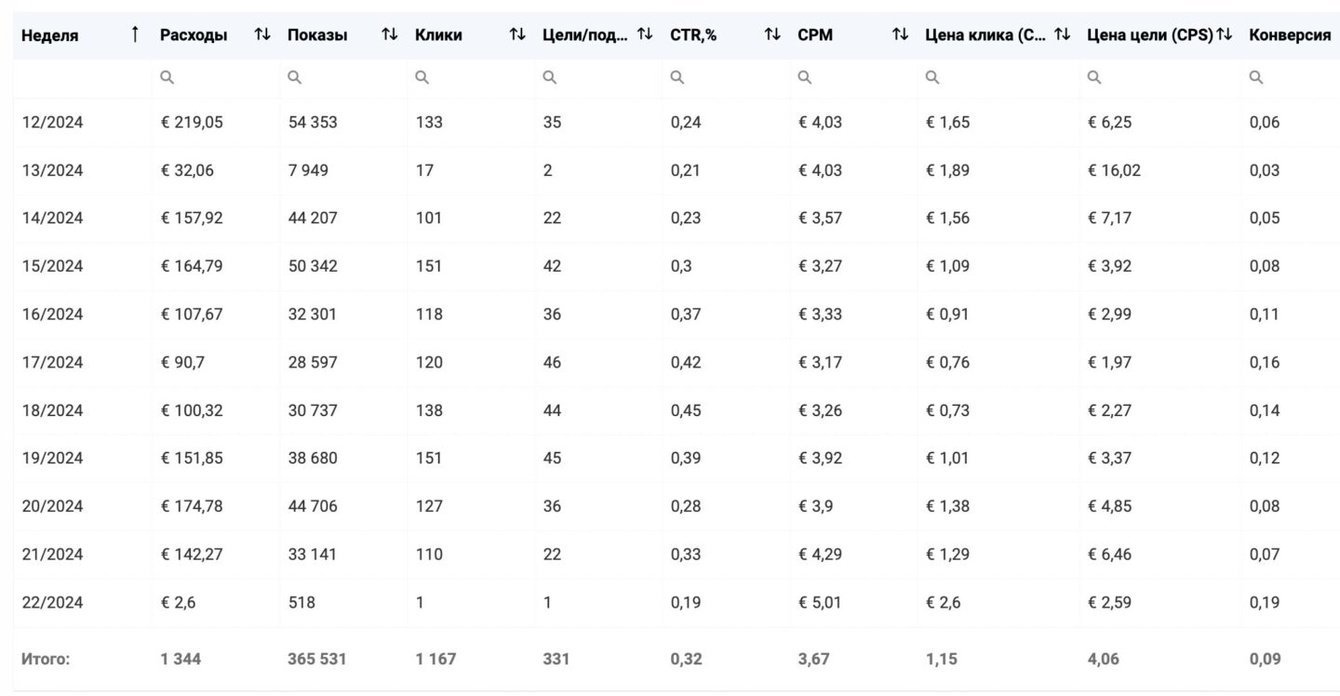 Мы часто используем «нестандартные конверсии», как в примере выше. Это позволяет обучить рекламные кампании, если бюджет небольшой, а цена заявки высокая. Бывают проекты, где B2B получают 30 заявок в месяц из-за узости ниши, но это кратно окупается за счет высокого чека сделки.