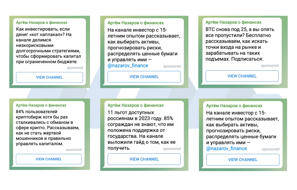 В работе с аудиториями были учтены подписчики прямых конкурентов, похожих каналов, а также подписчики похожих каналов конкурентов. Это помогло определить целевую аудиторию и создать более качественные объявления.