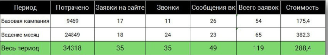 Аналитику заявок смотрели по Яндекс метрике, а также учитывали звонки по телефону и сообщения в группу сообщества во