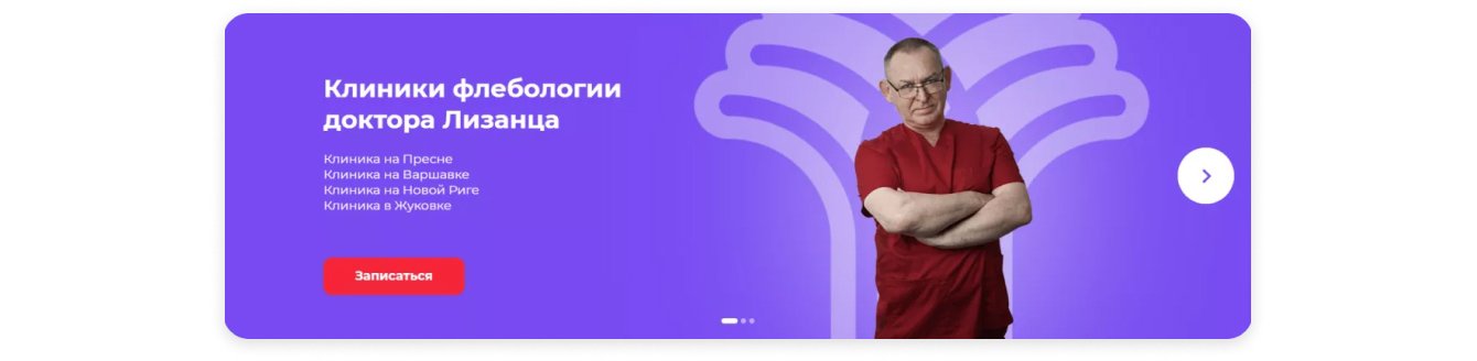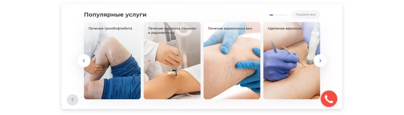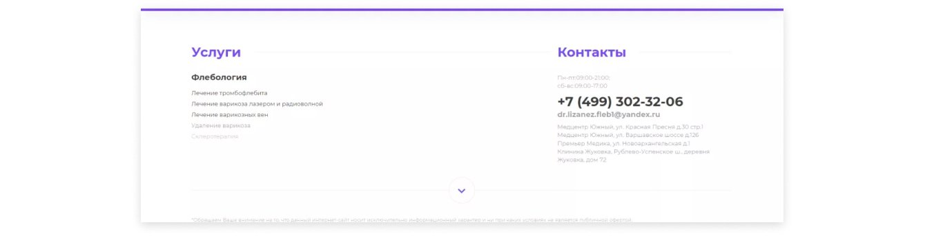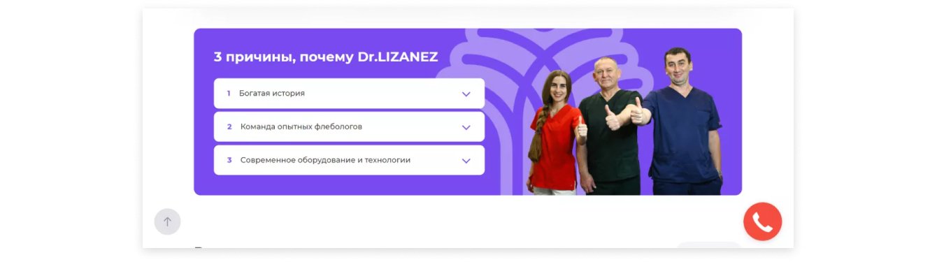 Особенно это касается сложных услуг и операций. При формировании структуры главной страницы мы общались с администраторами клиник доктора Лизанца. По их обратной связи мы подтвердили нашу гипотезу о повышенной осведомленности современных пациентов. Они не только понимают разницу между методами флебологических операций, но и активно спрашивают про используемое оборудование во время обращений.