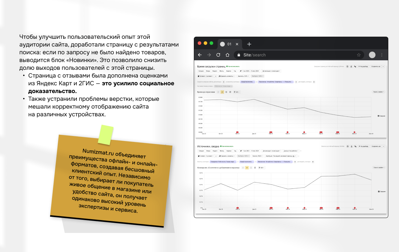 На смартфонах у новой аудитории была низкая скорость до отрисовки. Это влияло на поведенческие показатели: глубину просмотра, время на сайте, CR в просмотр товара и в добавление товара в корзину.
