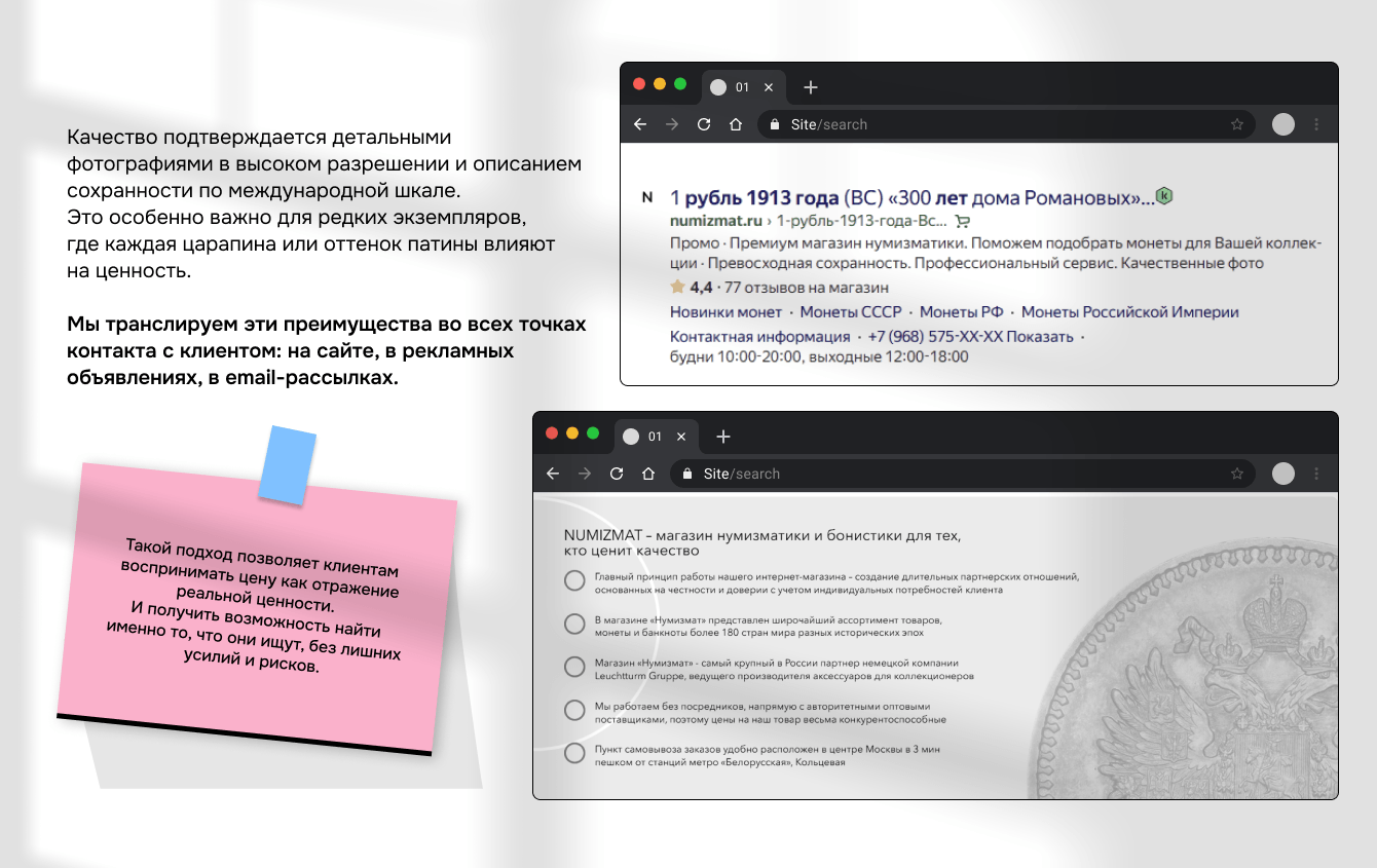 Разработать и внедрить digital-стратегию для интернет-магазина нумизматики Numizmat.ru, обеспечивающую рост ключевых метрик после смены владельца и позиционирования.