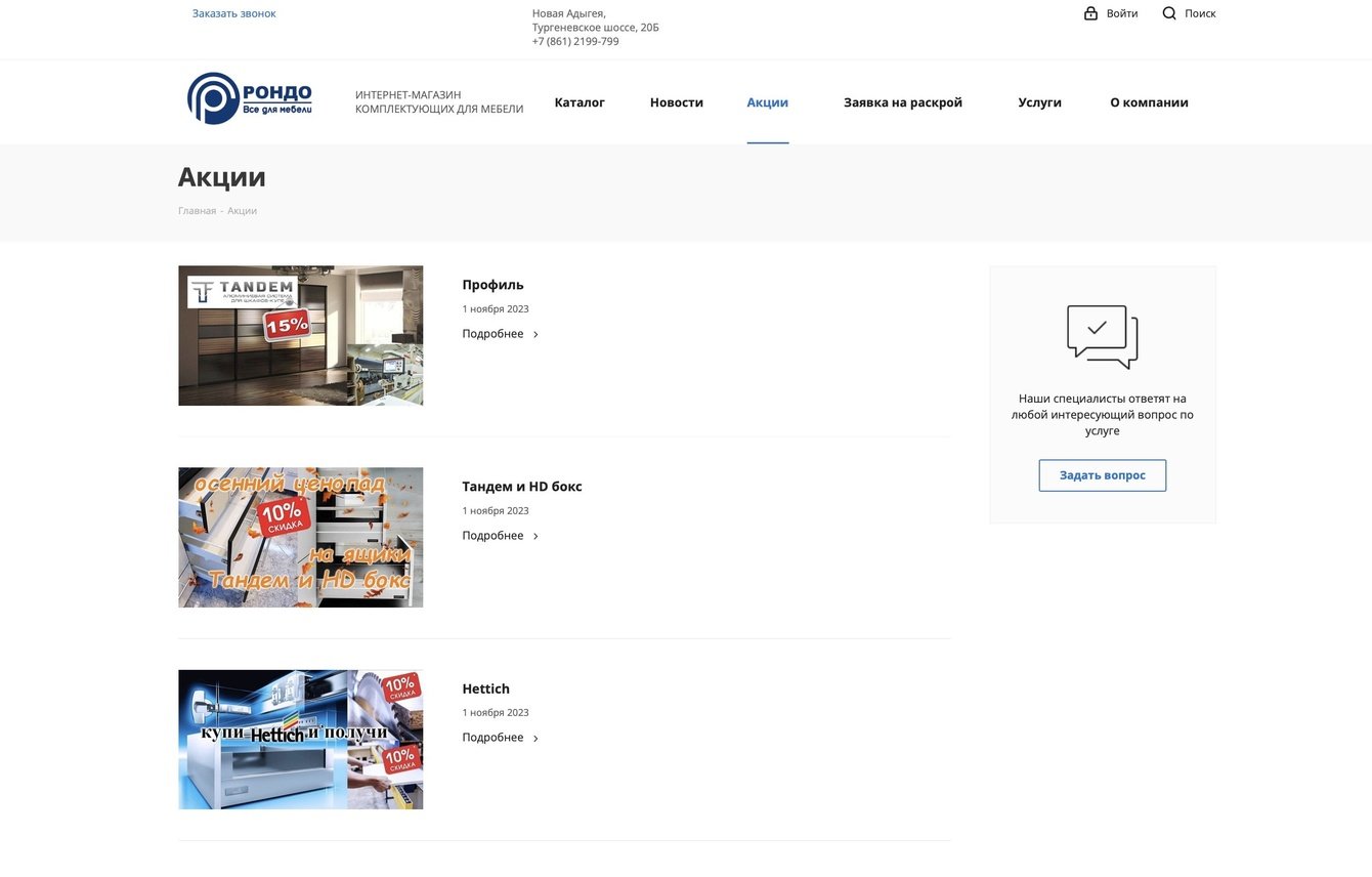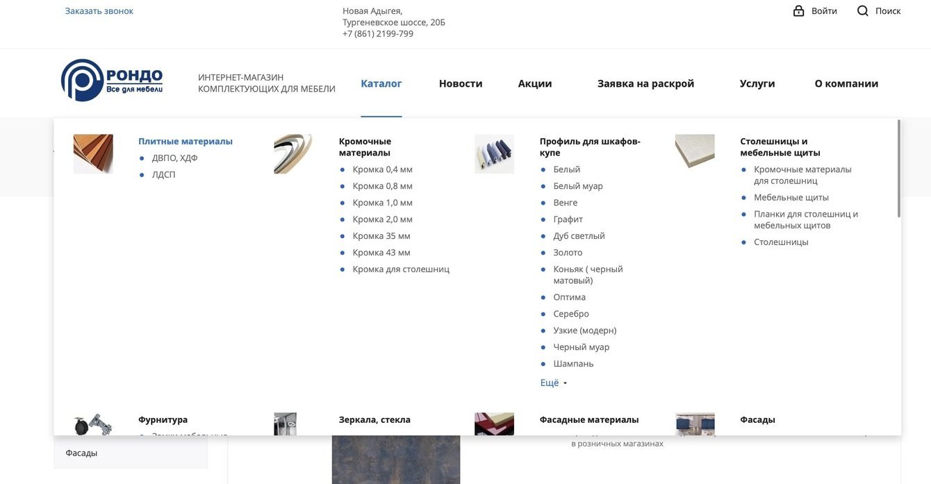 Наш клиент – компания Рондо. Это интернет-магазин, специализирующийся на поставках комплектующих для мебели на российском рынке. "Рондо" в течение многих лет поддерживает репутацию надежного и стабильного партнера среди мебельщиков. Представленная продукция включает в себя огромное разнообразие позиций – более 5000 наименований, покрывающих разные ценовые сегменты.