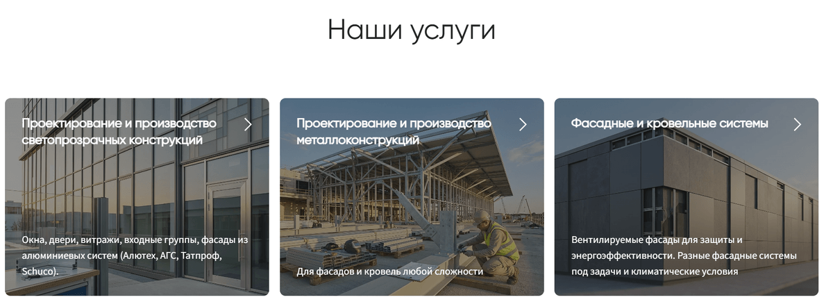 Мы создали отдельные страницы под новые направления: фасады и обслуживание территорий.