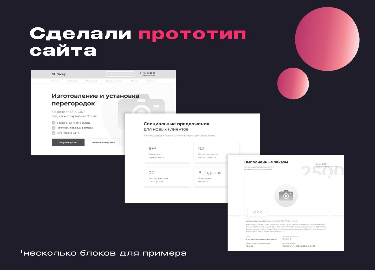GL Group занимаются производством и монтажом легких каркасных перегородок для офиса и дома в Москве и МО. На рынке с 2010 года, за это время успел поработать со «Сбером», «Леруа Мерлен» и РЖД. С самого старта получали заказы только с тендеров и рекламу в интернете не вел.