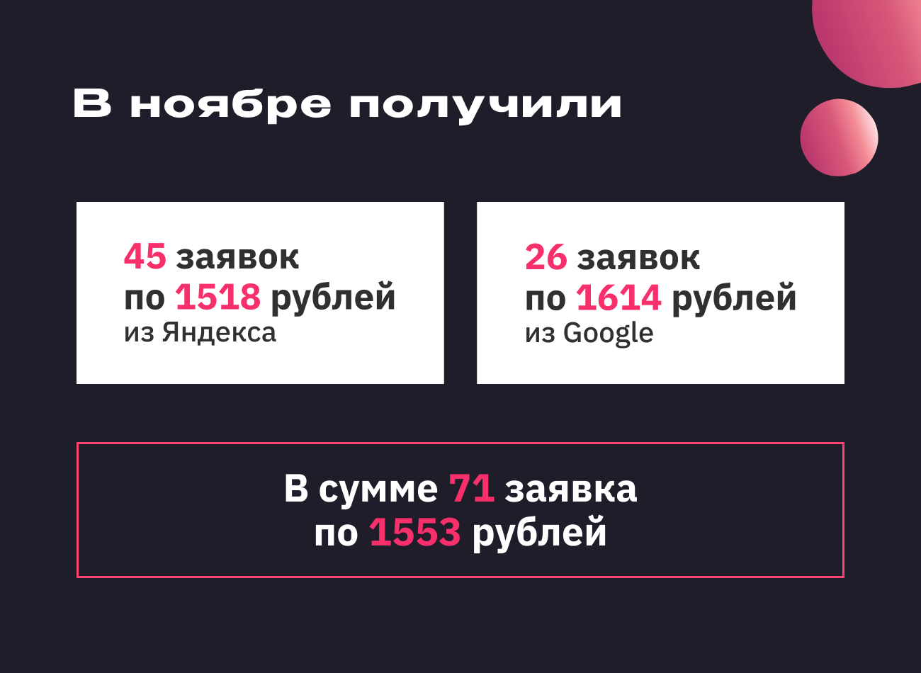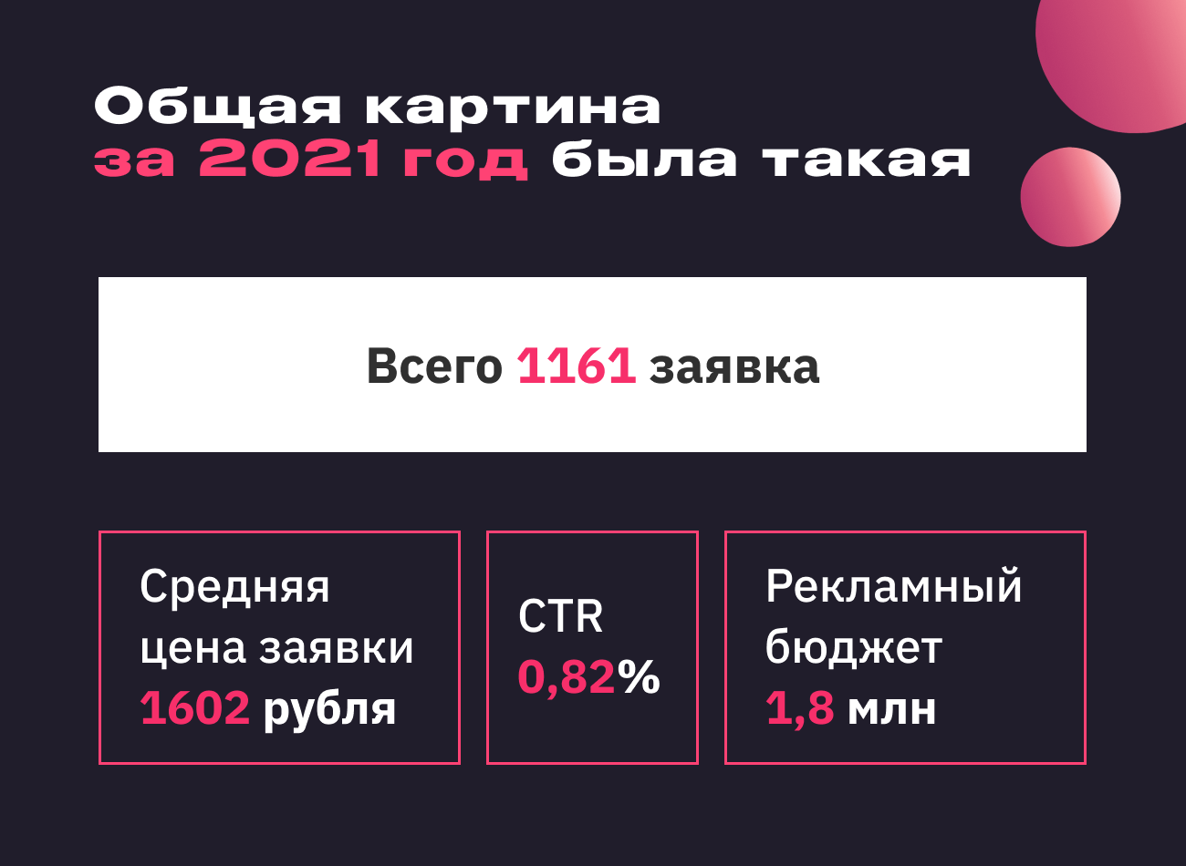 Решили оставить эти направления. Они работают и сейчас, цена лида в среднем 1500-2000 ₽.