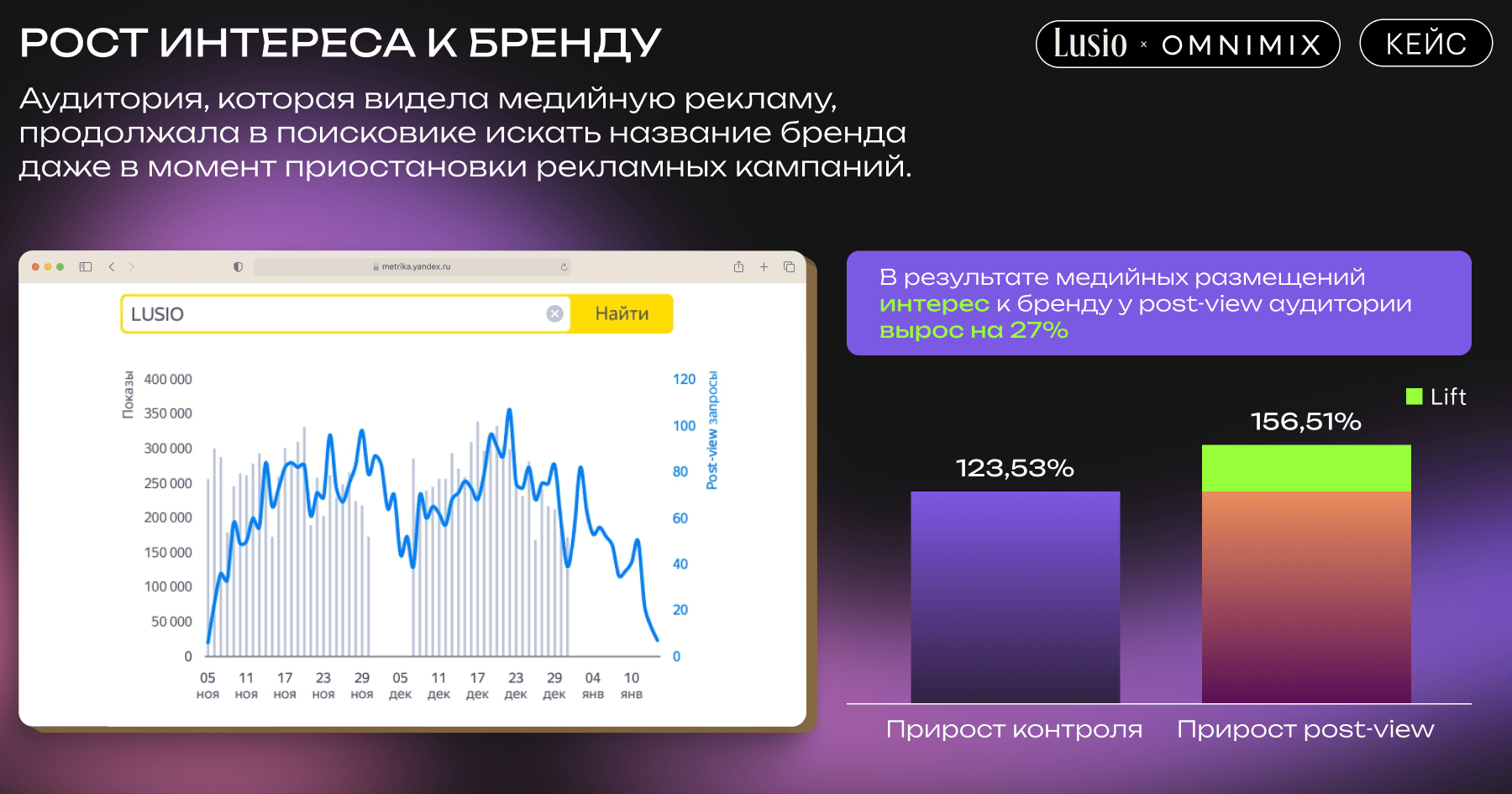 • В результате медийных размещений интерес к бренду у post-view аудитории вырос на 27%