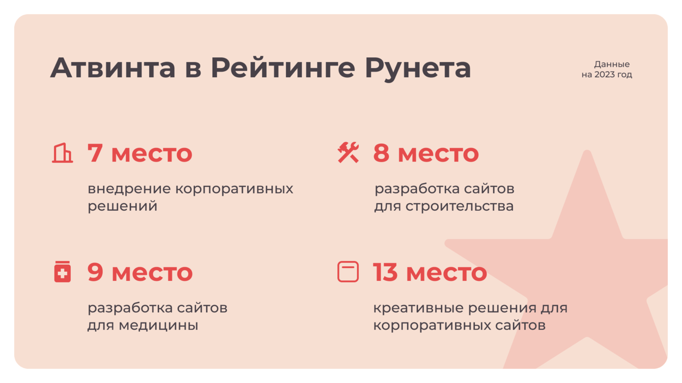 Атвинта относится к второй группе пользователей площадки. Мы используем все возможности проекта: участвуем в рейтингах, подаем работы на ежегодный конкурс и приобретаем платные размещения. Личное использование сайта нашей командой сделало сотрудничество еще более интересным.
