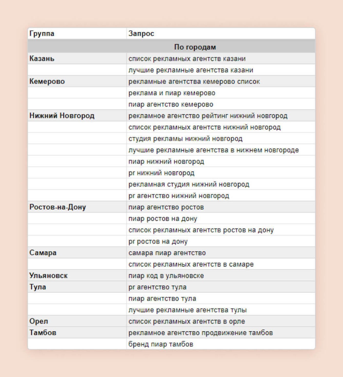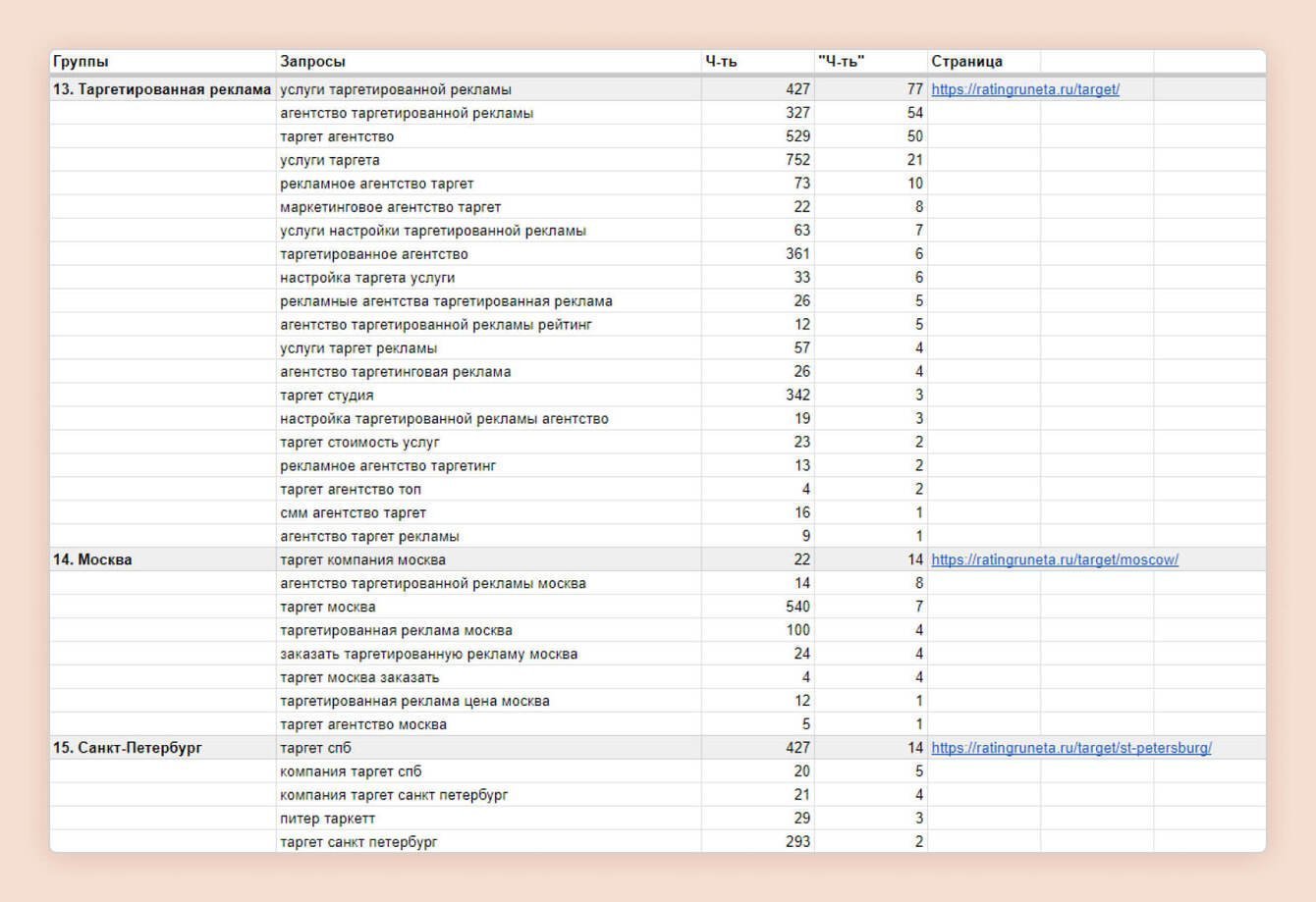 Поскольку целевых запросов со словами «рейтинг», «топ», «лучшие» было не так много, мы также собирали и коммерческие запросы.