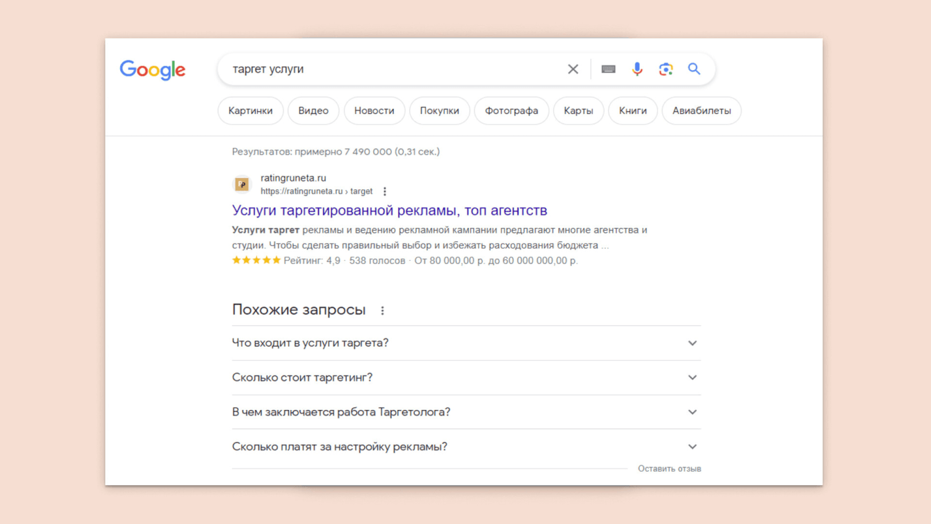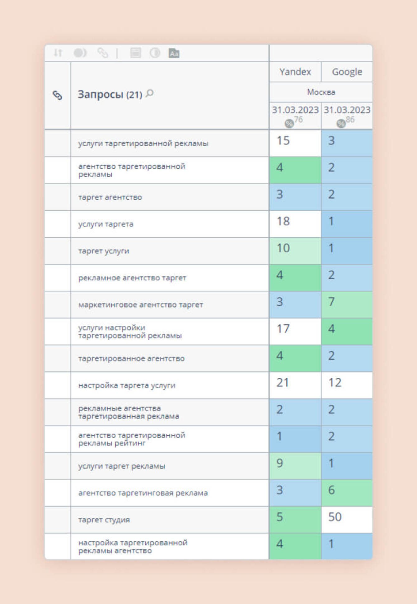 Для примера несколько запросов, по которым мы вышли на первую строку в Google:
