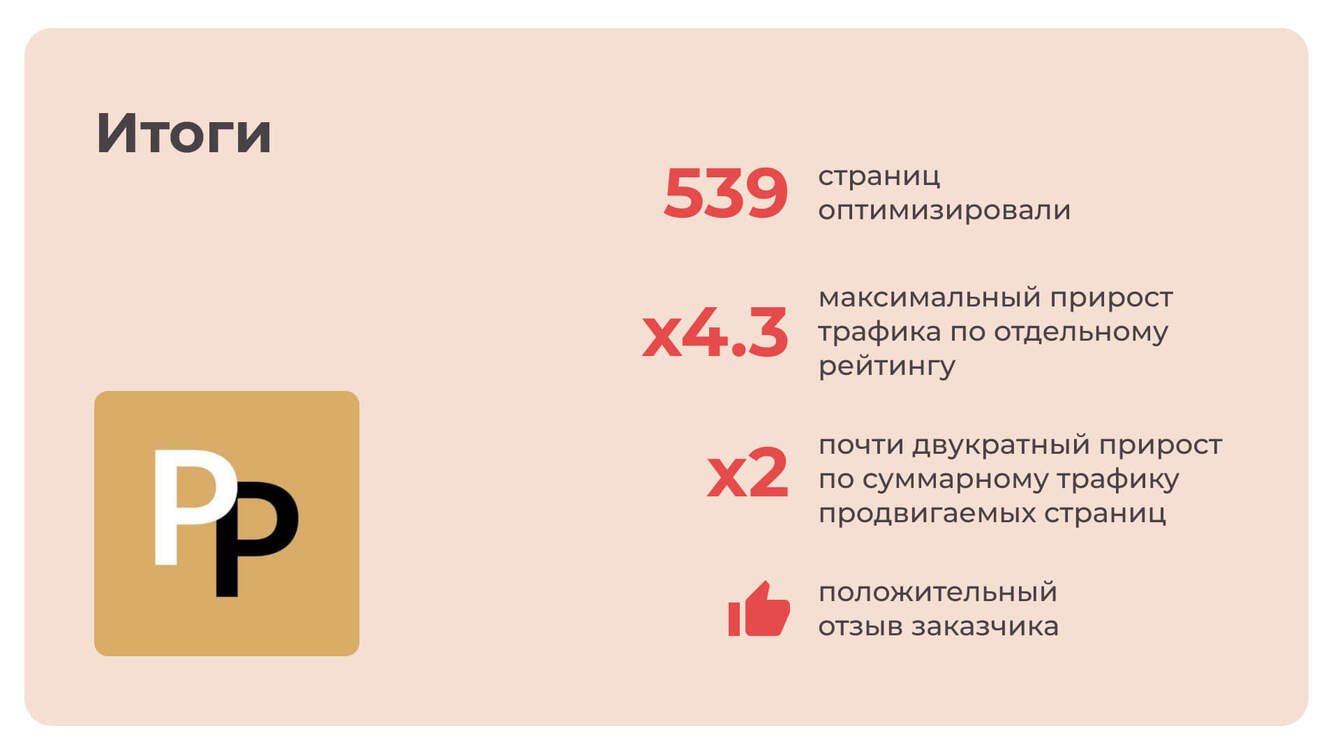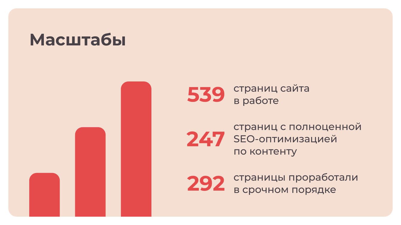 В проекте была и нестандартная ситуация, где мы экстренно выполнили масштабный объем работ. Рейтинг Рунета выпустил новые рейтинги, которые срочно нуждались в оптимизации. Такая же необходимость появилась и у ряда давно действующих рейтингов.