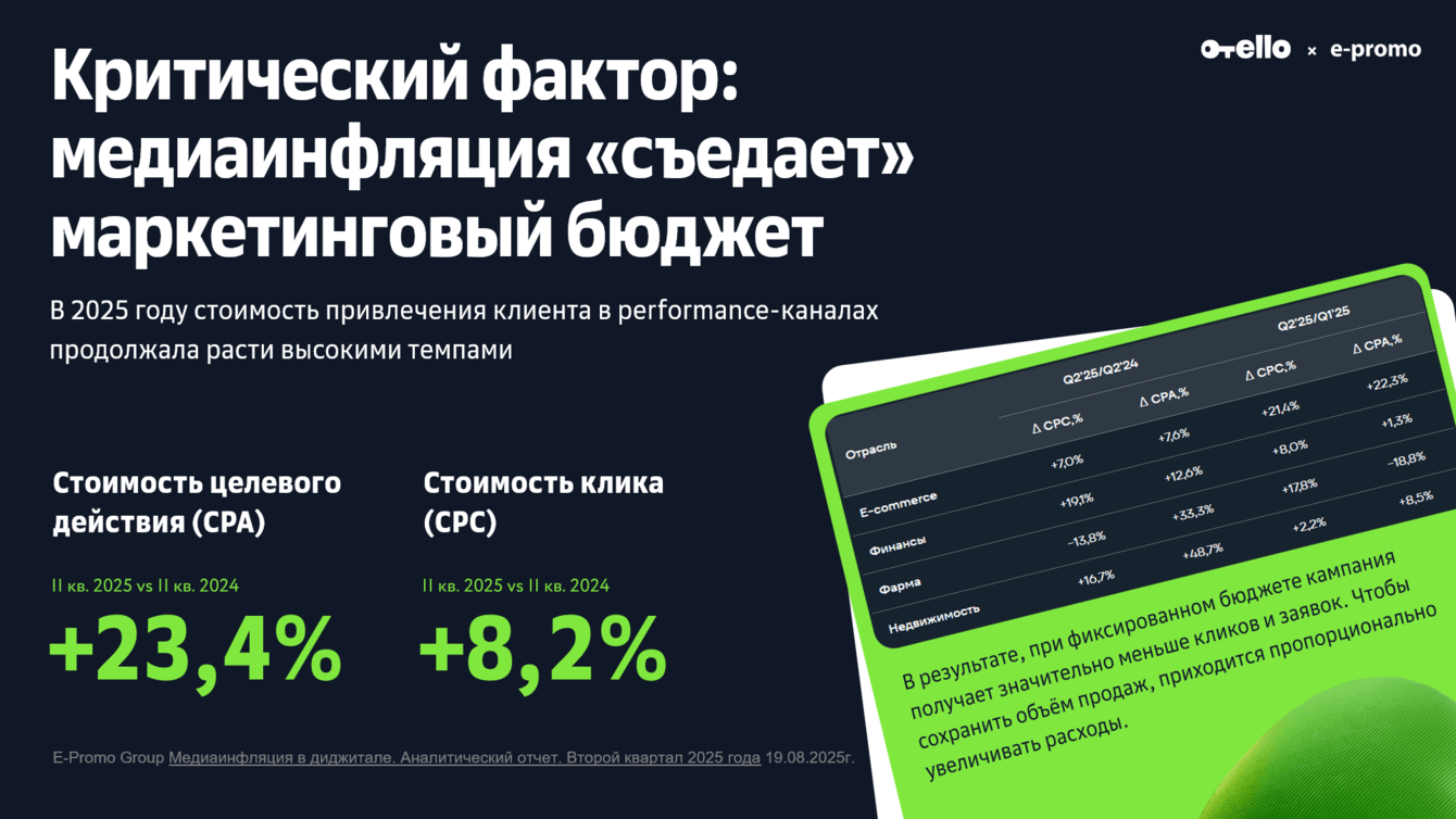 E-Promo Group Медиаинфляция в диджитале. Аналитический отчет. Второй квартал 2025 года 19.08.2025г. (https://www.epromogroup.com/ru/insights/mediainflyatsiya-v-didzhitale-analiticheskiy-otchet-vtoroy-kvartal-2025-goda)